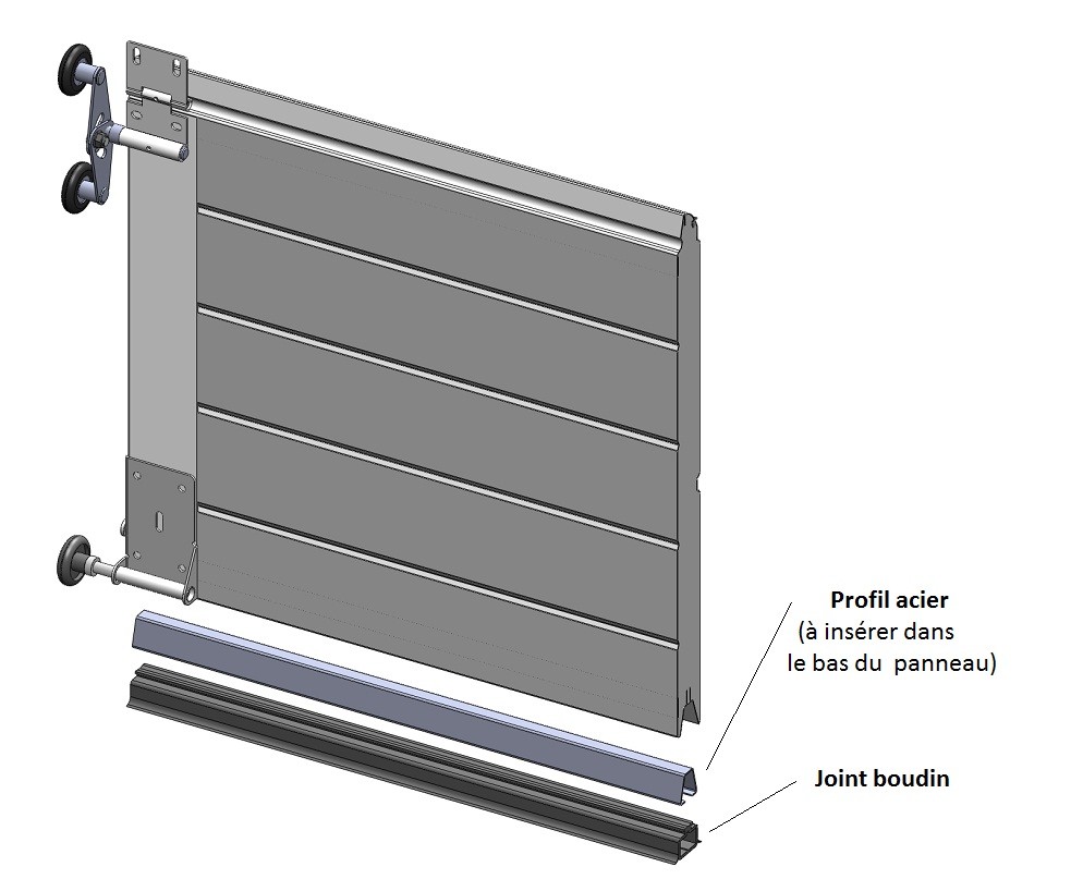 Vérifier que le bas de votre panneau possède bien une partie creuse pour venir recevoir ce profil. Si le bas de votre porte de garage est plat, optez alors pour ce support de joint bas de porte de garage.