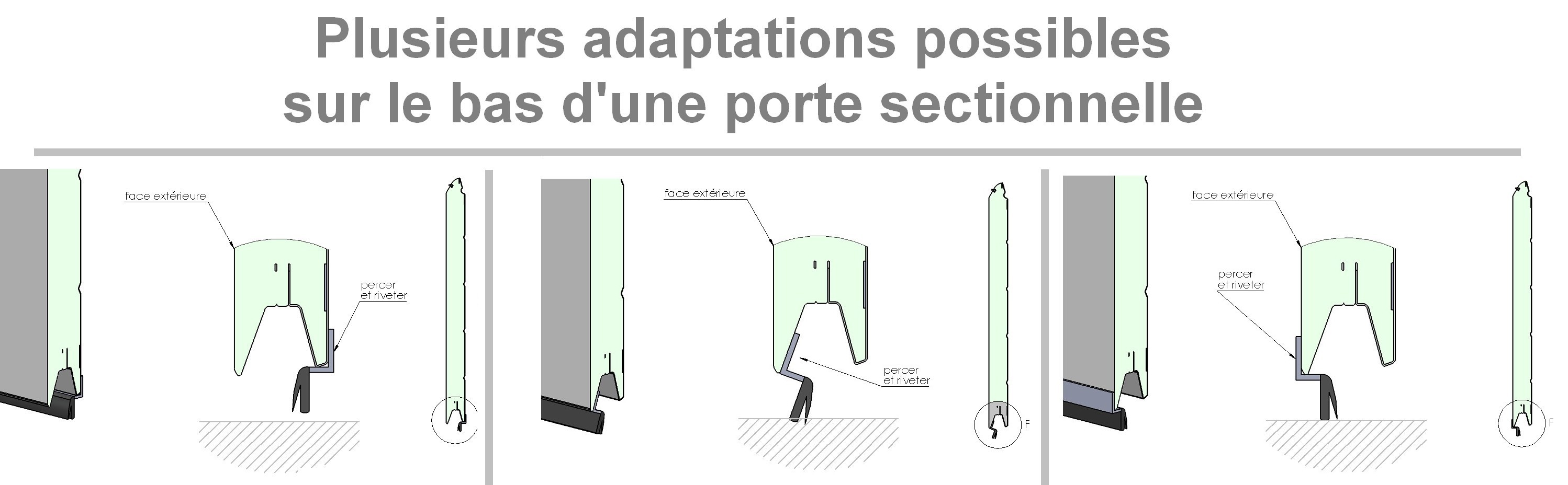 Ce joint peut également servir de joint de bas de porte de garage sectionnelle (se référer au schéma en illustration).