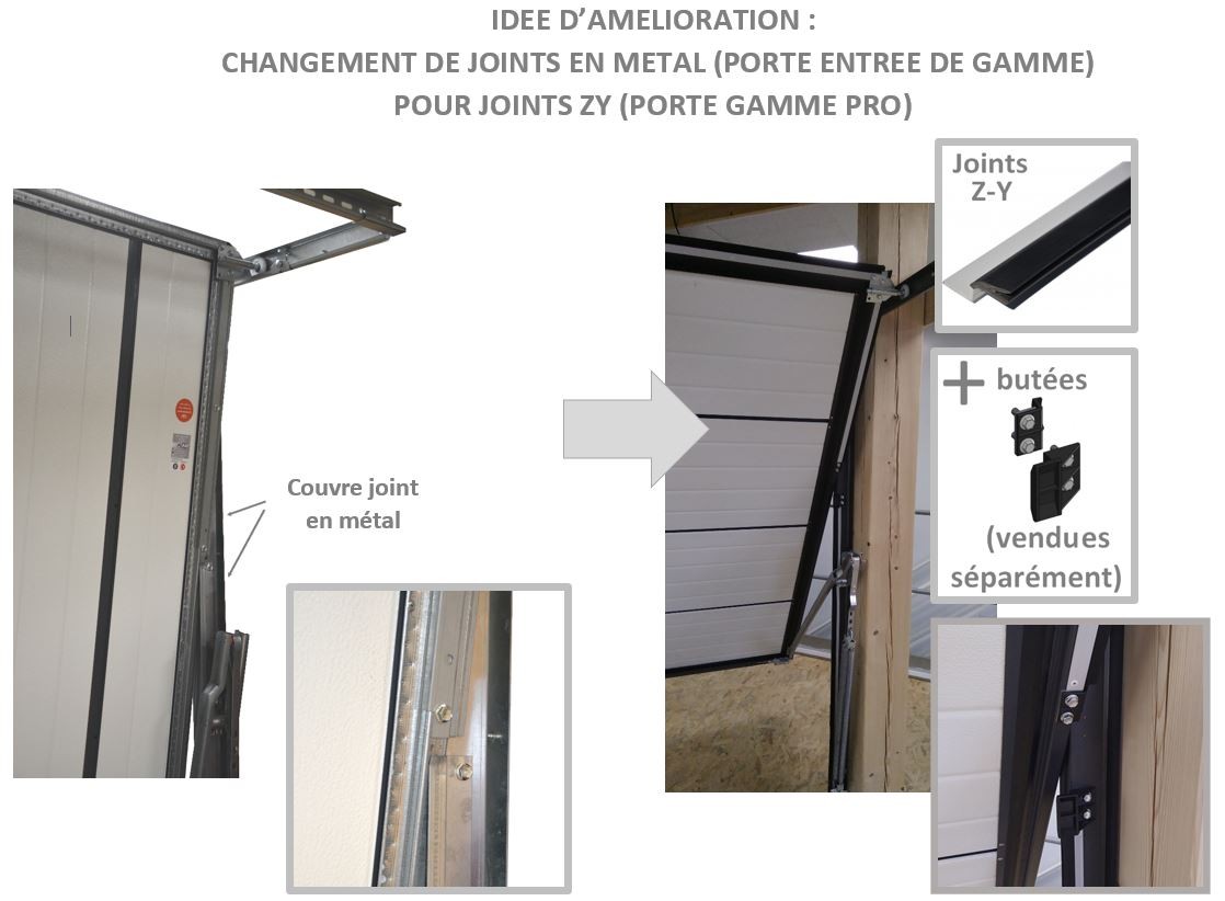 Ce joint peut se fixer par emboitement sur le bord des montants de la porte de garage.