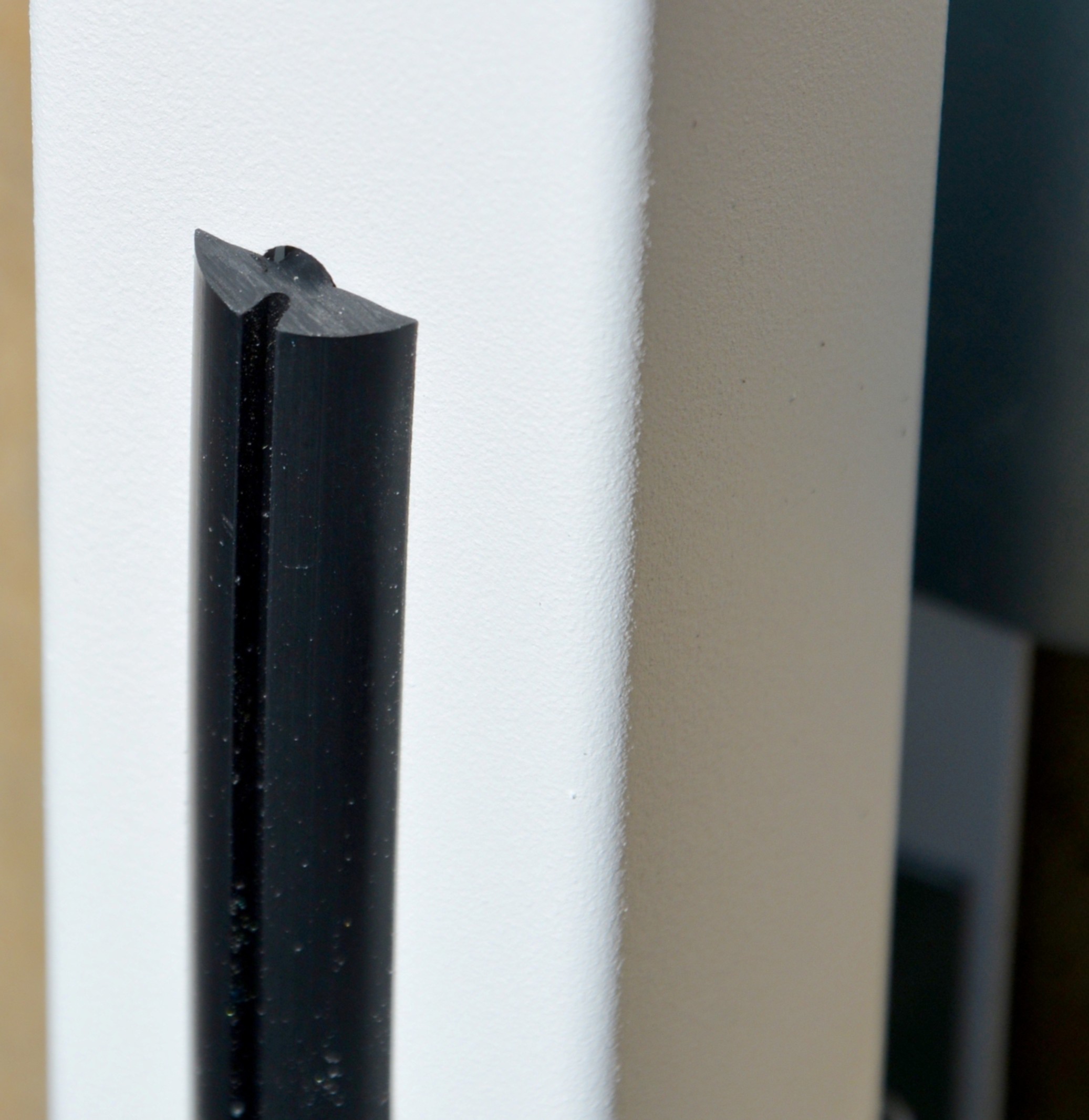 Se fixe dans les rainures en haut des montants et permet de guider le tablier pendant l'ouverture et de respecter le jeu latéral de 7mm entre le tablier et les montants d'huisserie.