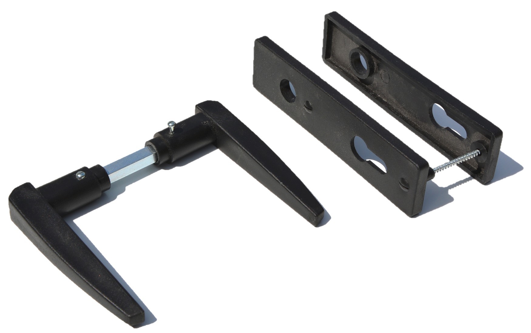 Ensemble plaque + béquilles en PVC noir - Entraxe 70mm - Carré 8mm