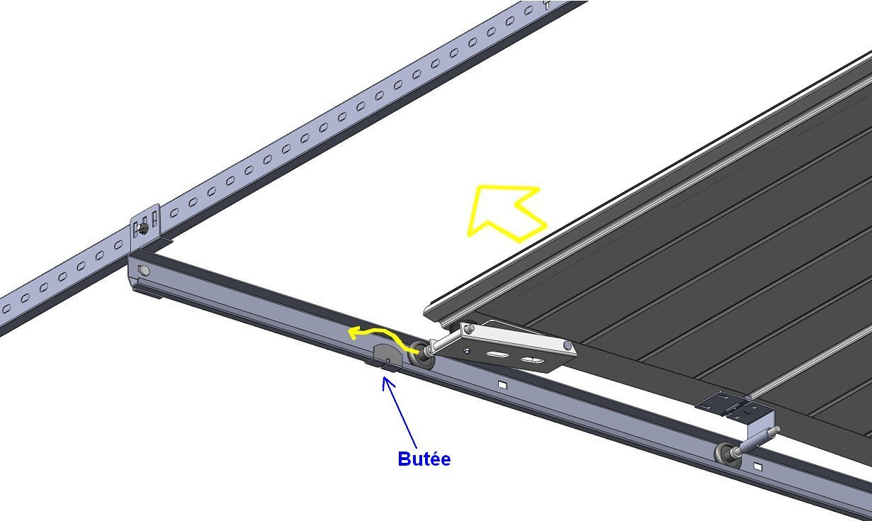 puce maintenir une porte de garage manuelle en position ouverte. Dans ce cas, levez la porte et l'axe de la roulette passera sur l'arrondi de la pièce. Cela suffit à l'empêcher de redescendre.