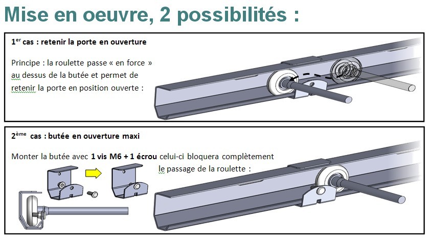 Pour des portes jusque 250cm de large, une seule butée d'un côté suffit.