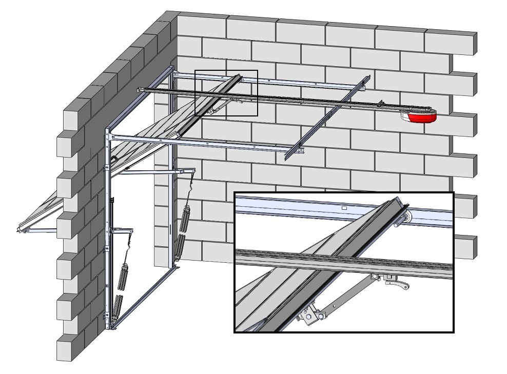 A fixer à l'aide des goupilles (non fournies) présentes sur le chariot moteur et la pièce d'arrimage sur la porte.