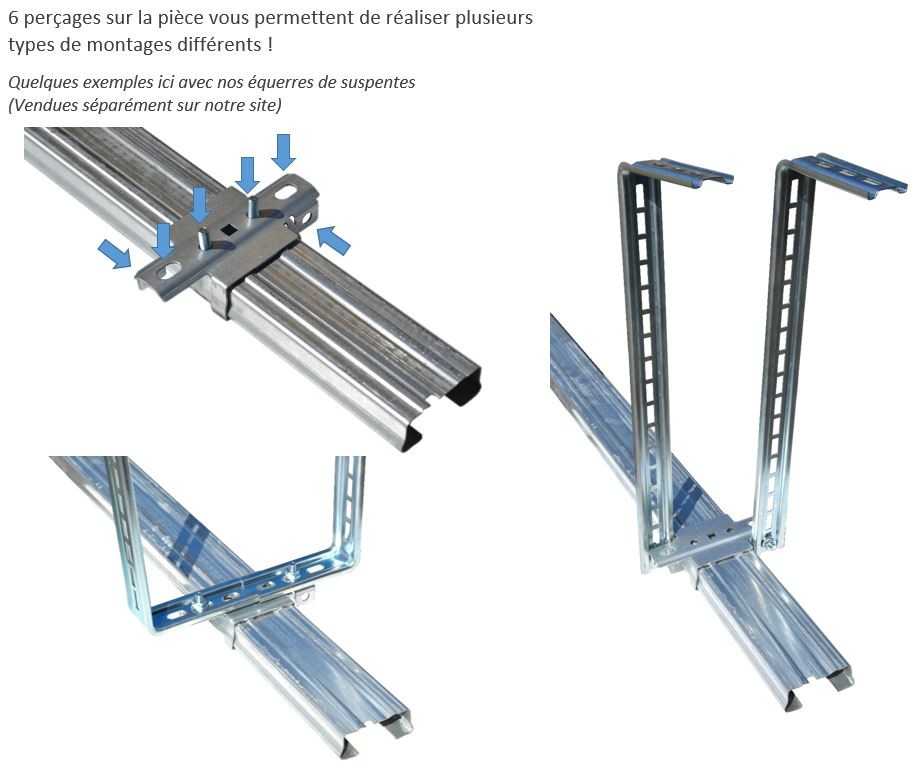 Il sert ainsi par la suite à suspendre le rail au plafond par l'intermédiaire d'équerres de suspente (non fournies).