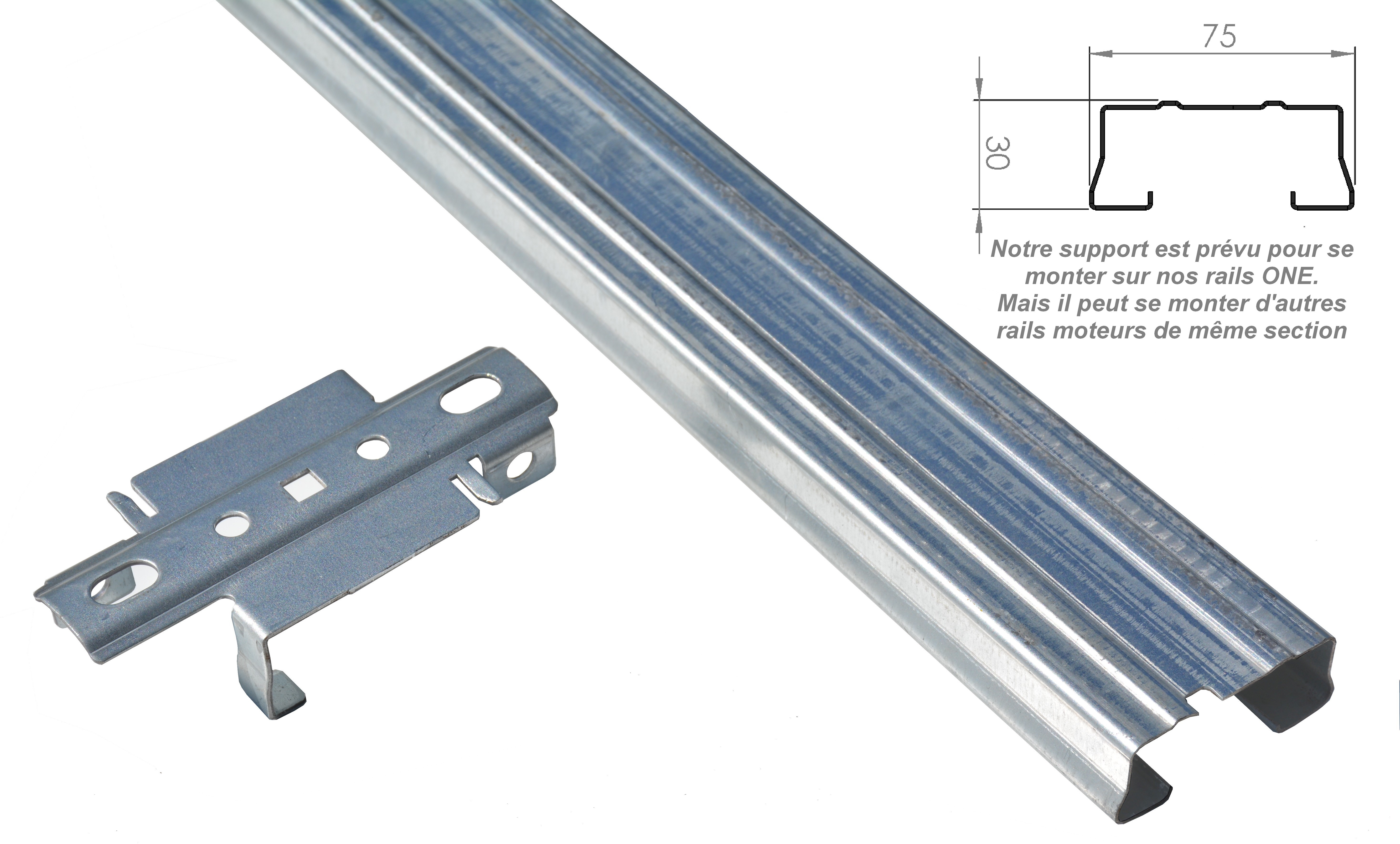Le support de rail vient se fixer sur le profil des rails de toute la gamme de moteurs ONE.