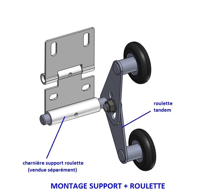 Ces roulettes tandem remplacent ainsi les anciens supports réglables installés sur les charnières tels que celui-ci :