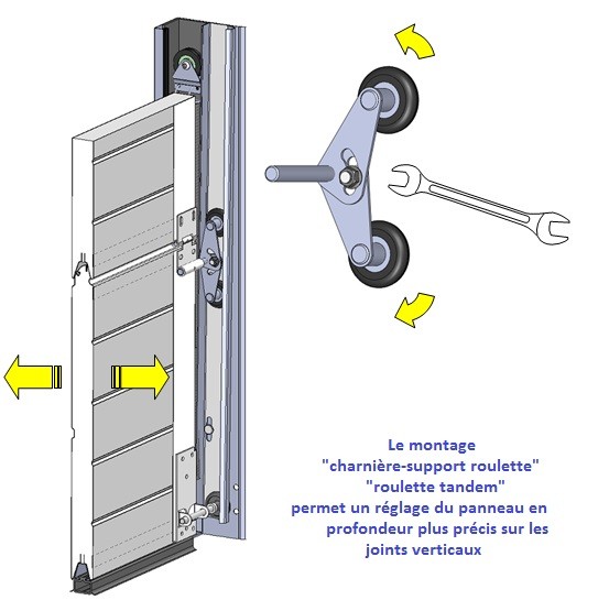 Les roulettes tandem offrent un réglage supplémentaire pour une porte de garage sectionnelle par rapport à une simple roulette. En effet, leur écartement réglable permet d'ajuster votre panneau sur les joints périphériques et offre alors un réglage précis.