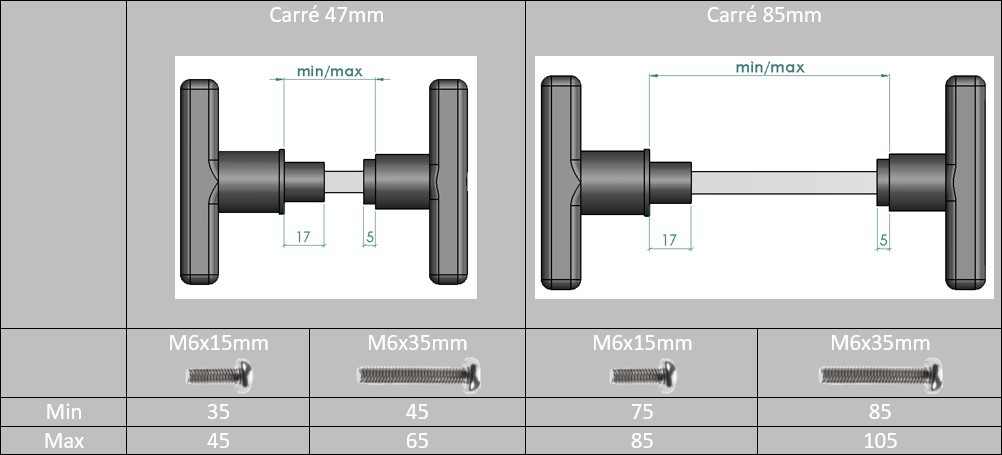 puce 2 vis de réglage incluses : 6x15mm et 6x35mm