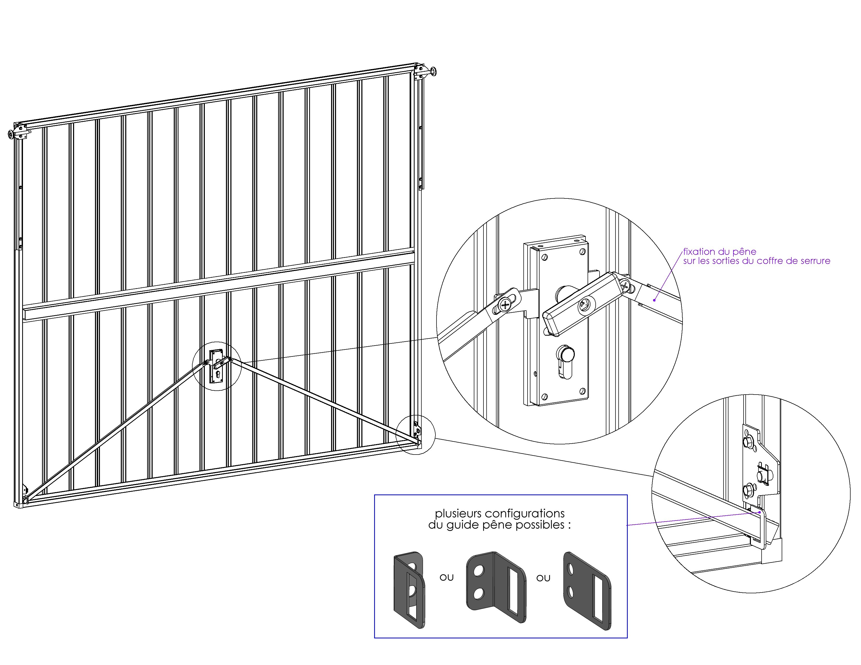Pêne de serrure en acier galvanisé (pênes ou tringleries) pour porte de garage.