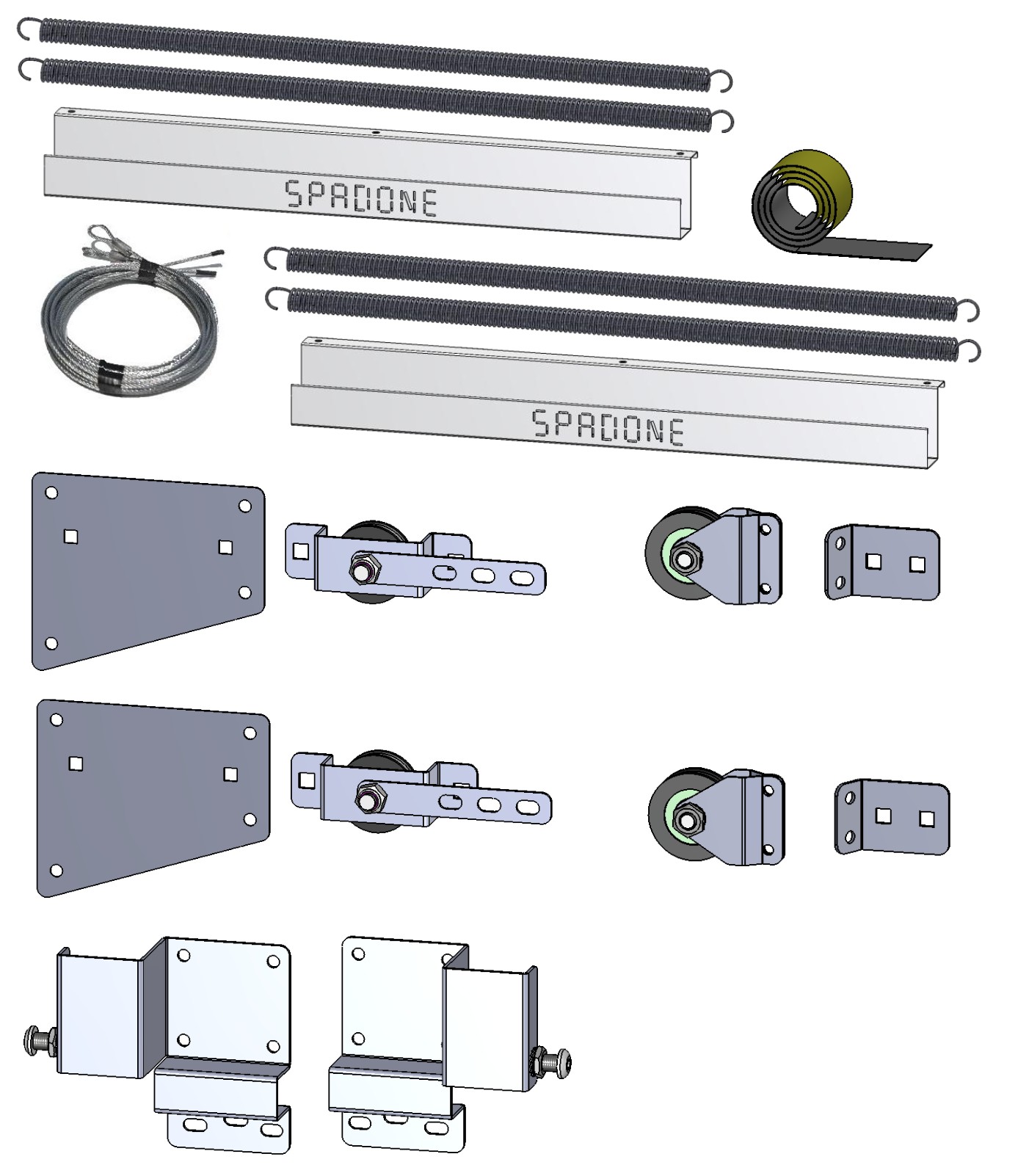 Un kit contient tout le matériel nécéssaire pour équiper les deux côtés d'une porte Wayne Dalton.