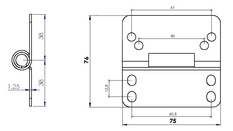 Charnière à utiliser au niveau des articulations entre les panneaux au centre d'une porte de garage sectionnelle Wayne dalton ou sur les cotés en support roulette.