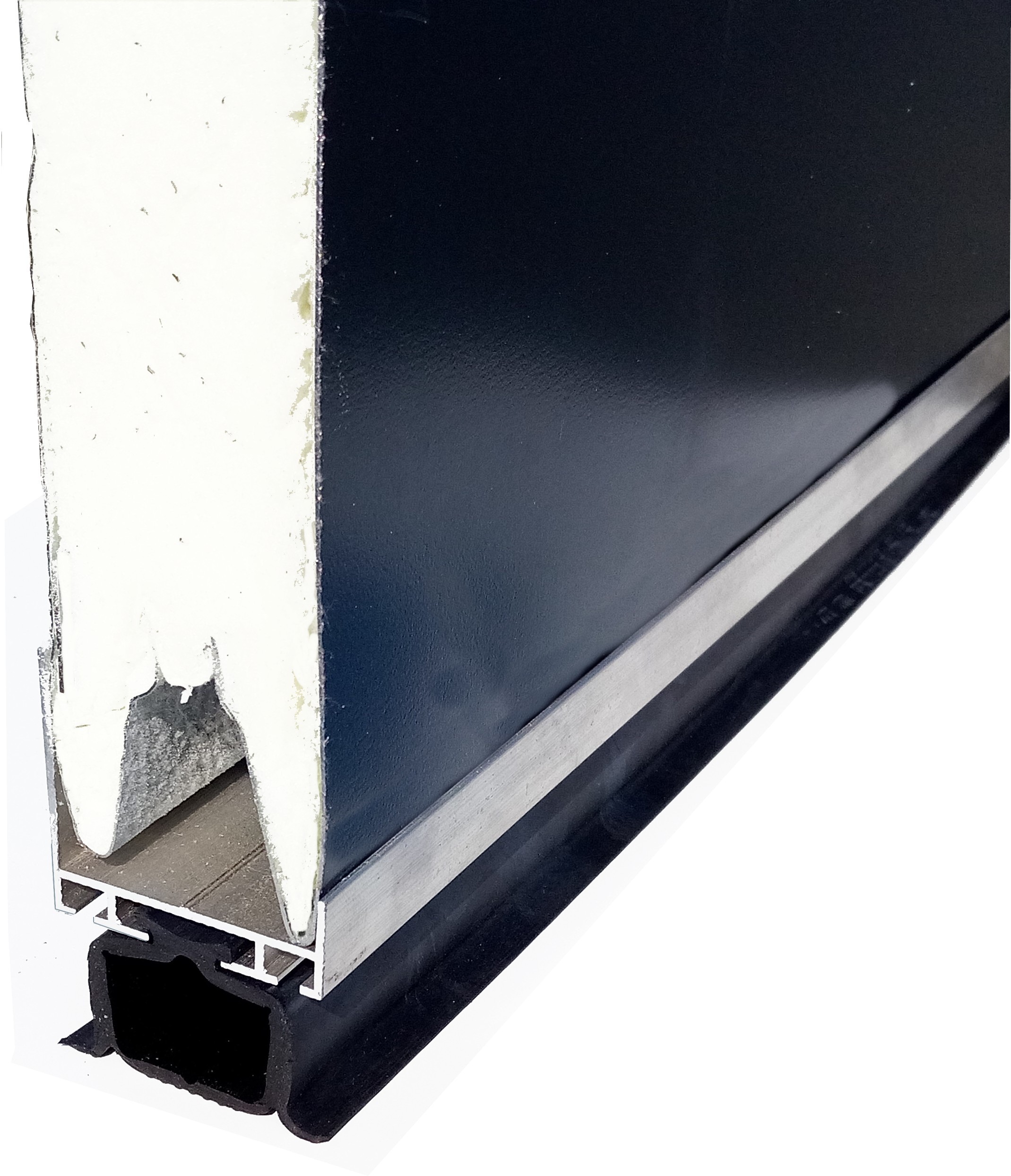 Ce profil en aluminium s'emboîte dans le bas du panneau d'une porte sectionnelle et sert de support au Joint Boudin EPDM (vendu séparément)