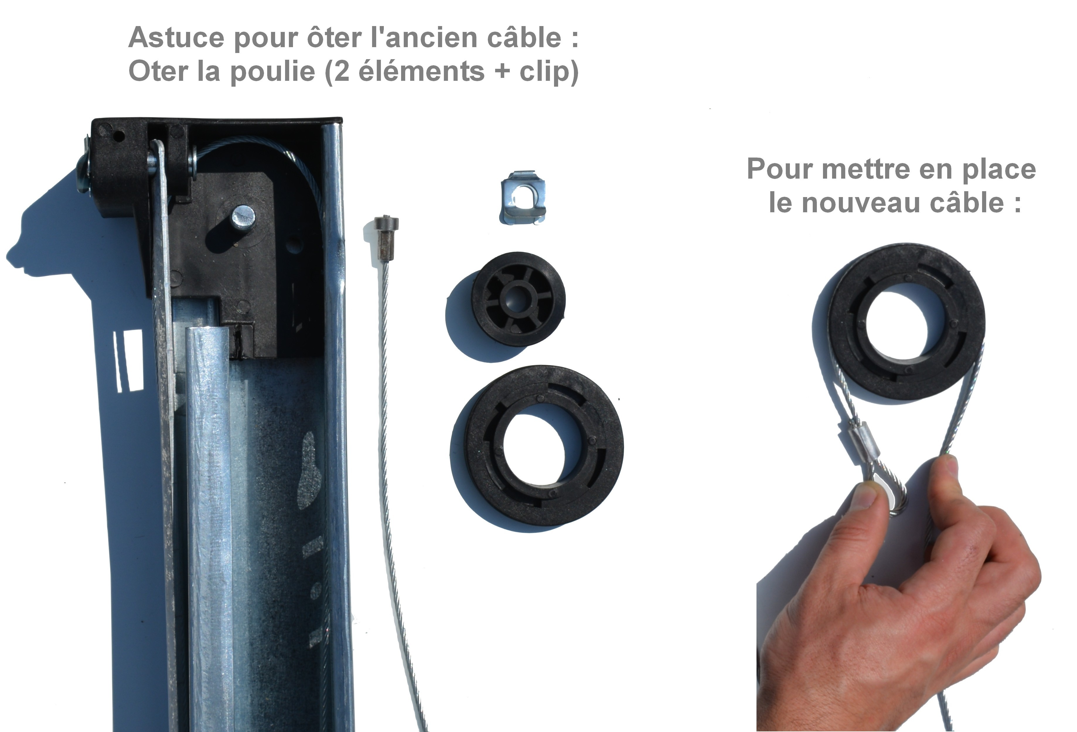 puceÔter l'ancien câble en commençant par la poulie haute