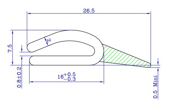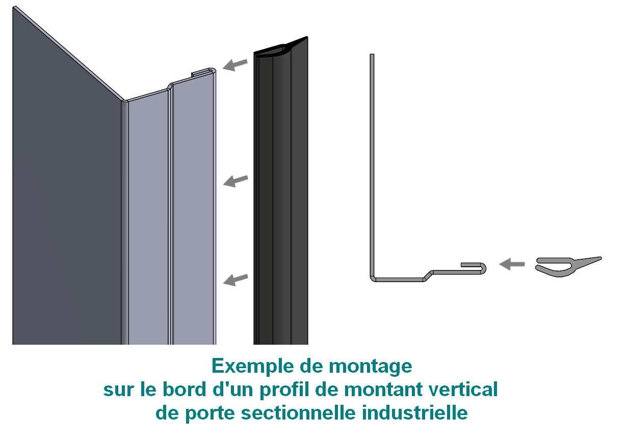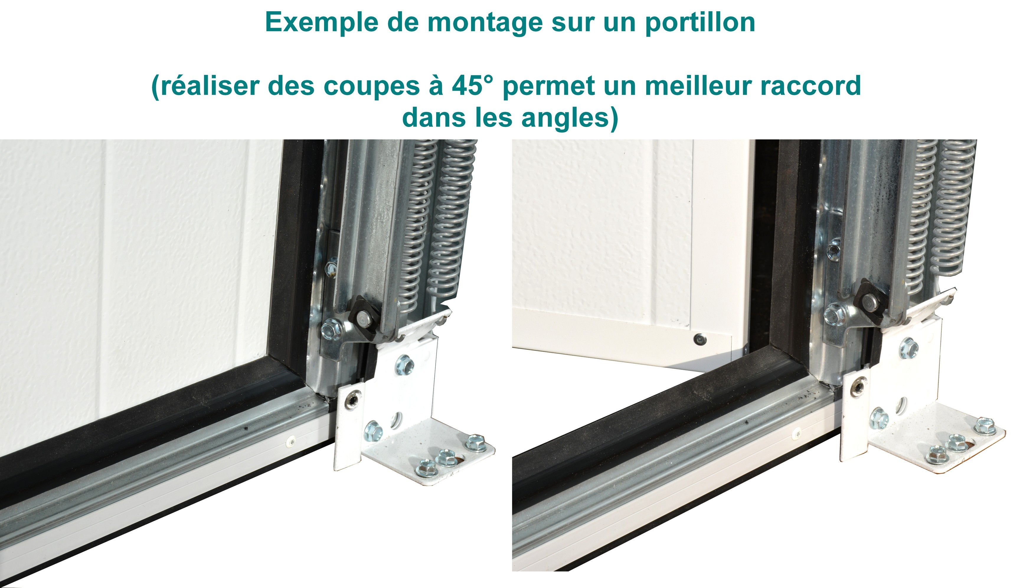 Se fixe dans les rainures en haut des montants et permet de guider le tablier pendant l'ouverture et de respecter le jeu latéral de 7mm entre le tablier et les montants d'huisserie.
