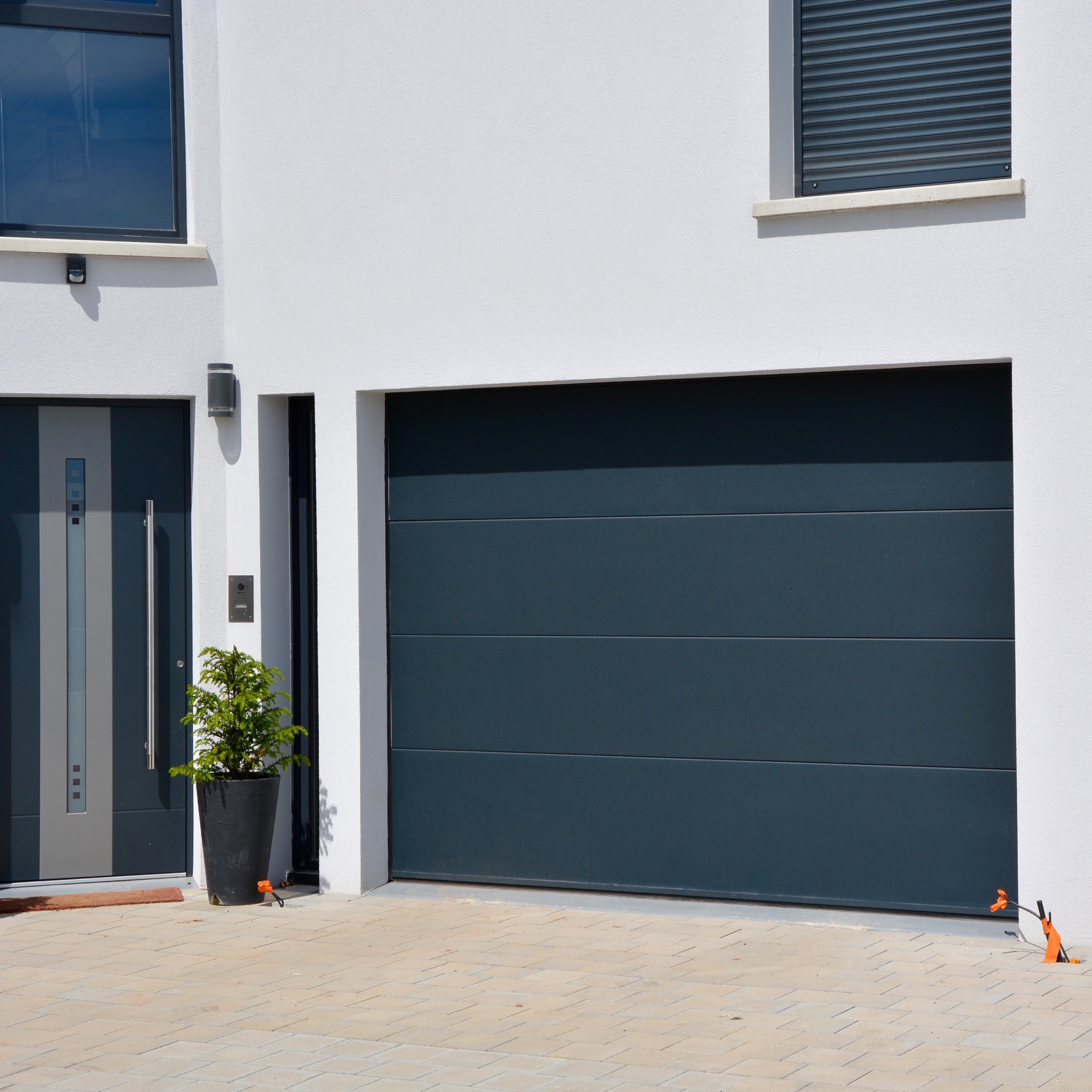 La porte sectionnelle Secura est également disponible avec un portillon central, issu de notre gamme Pro.