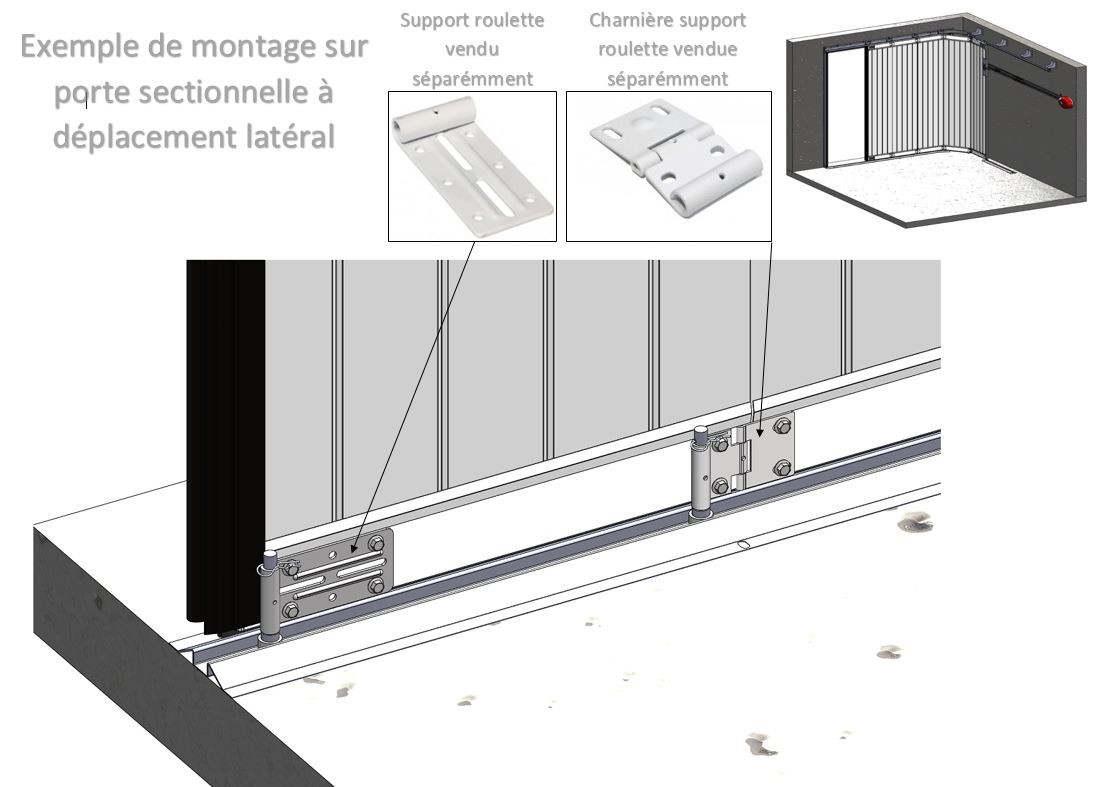 Galet de guidage bas pour porte sectionnelle à deplacement latéral