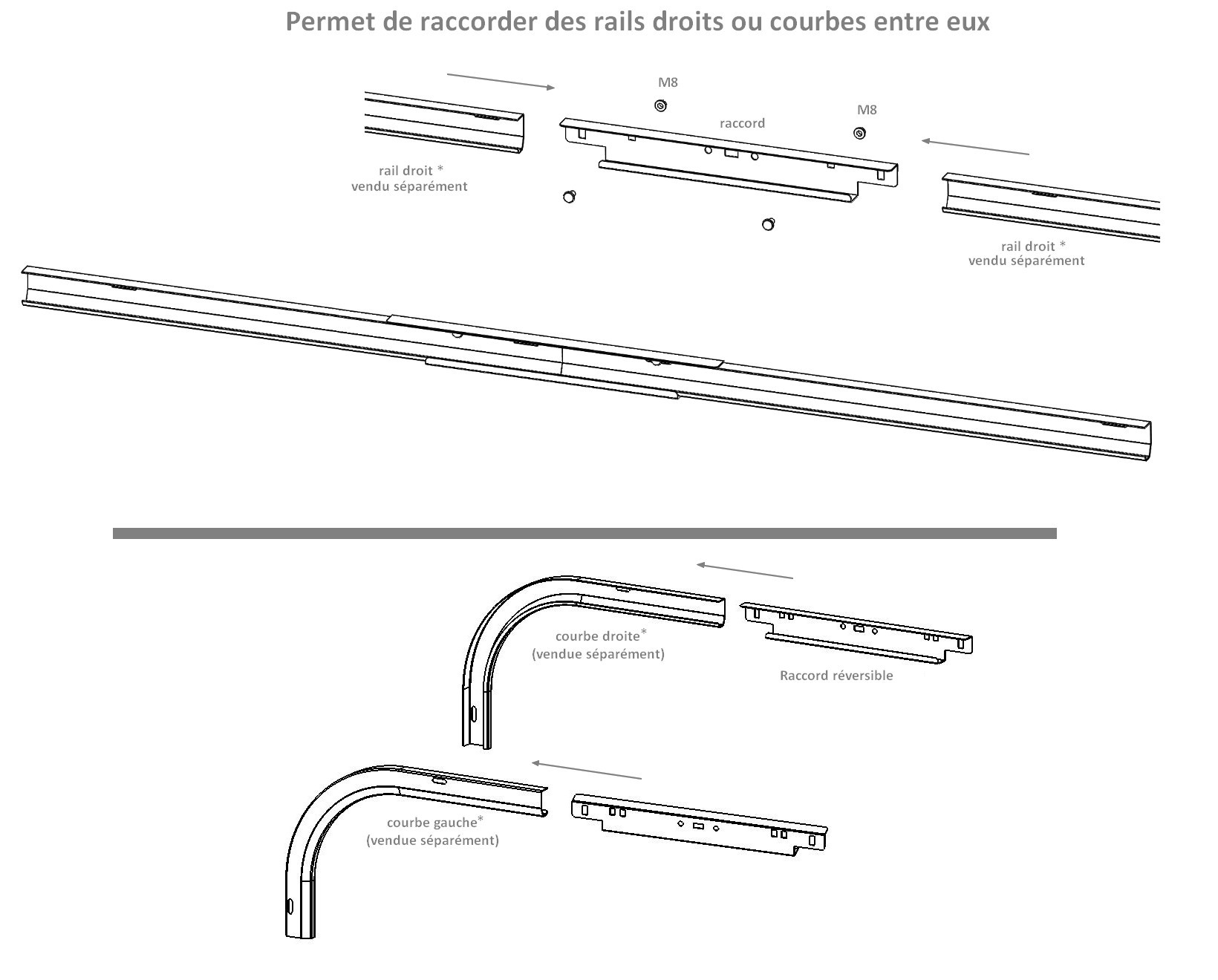 Rails également disponibles en longueur 1,2 à 1,8m avec transport par Colissimo