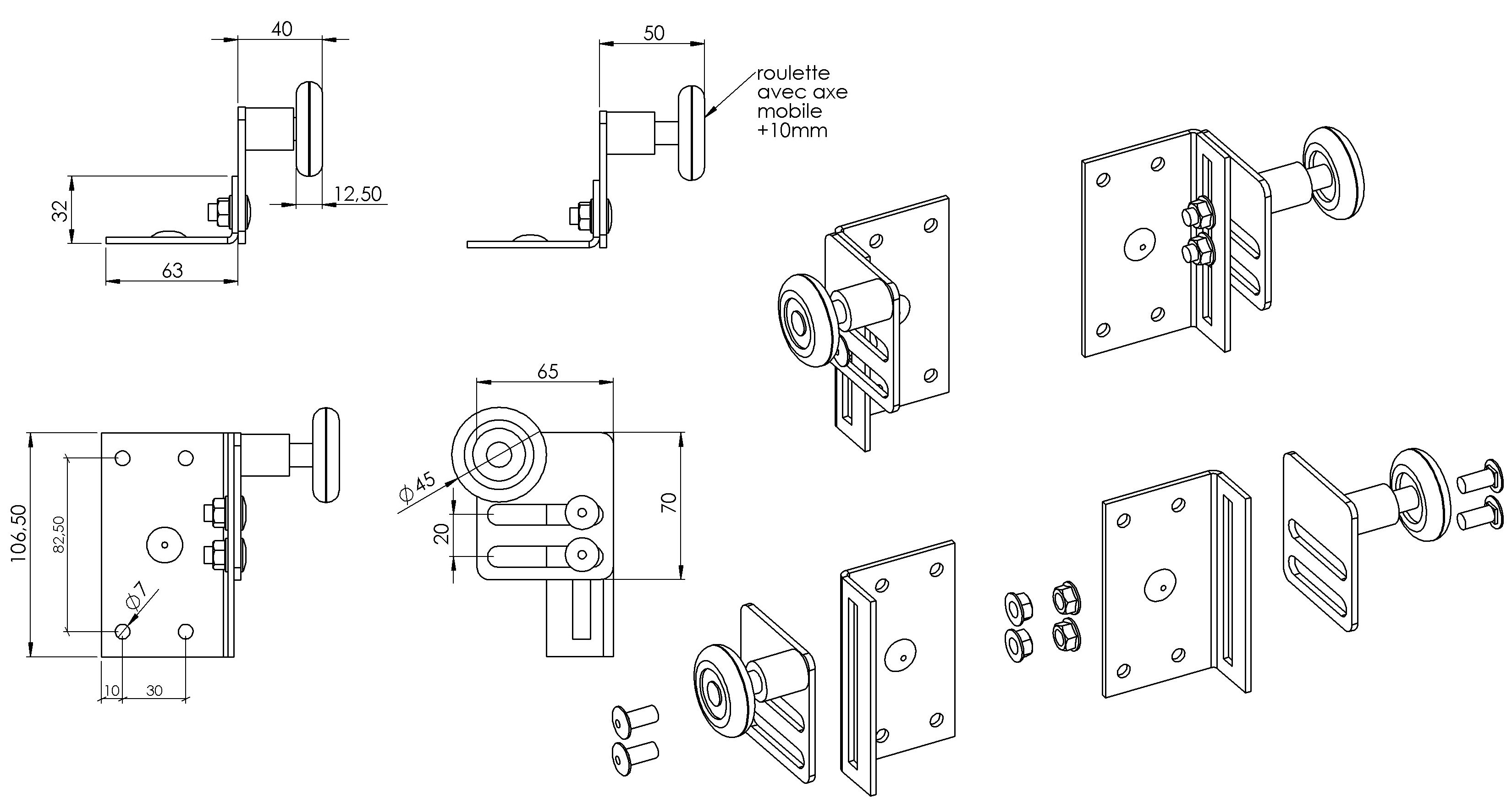 Le guide roulette déplaçable offre un réglage supplémentaire pour une porte de garage sectionnelle par rapport à une simple roulette. En effet, leur écartement réglable permet d'ajuster votre panneau sur les joints périphériques.