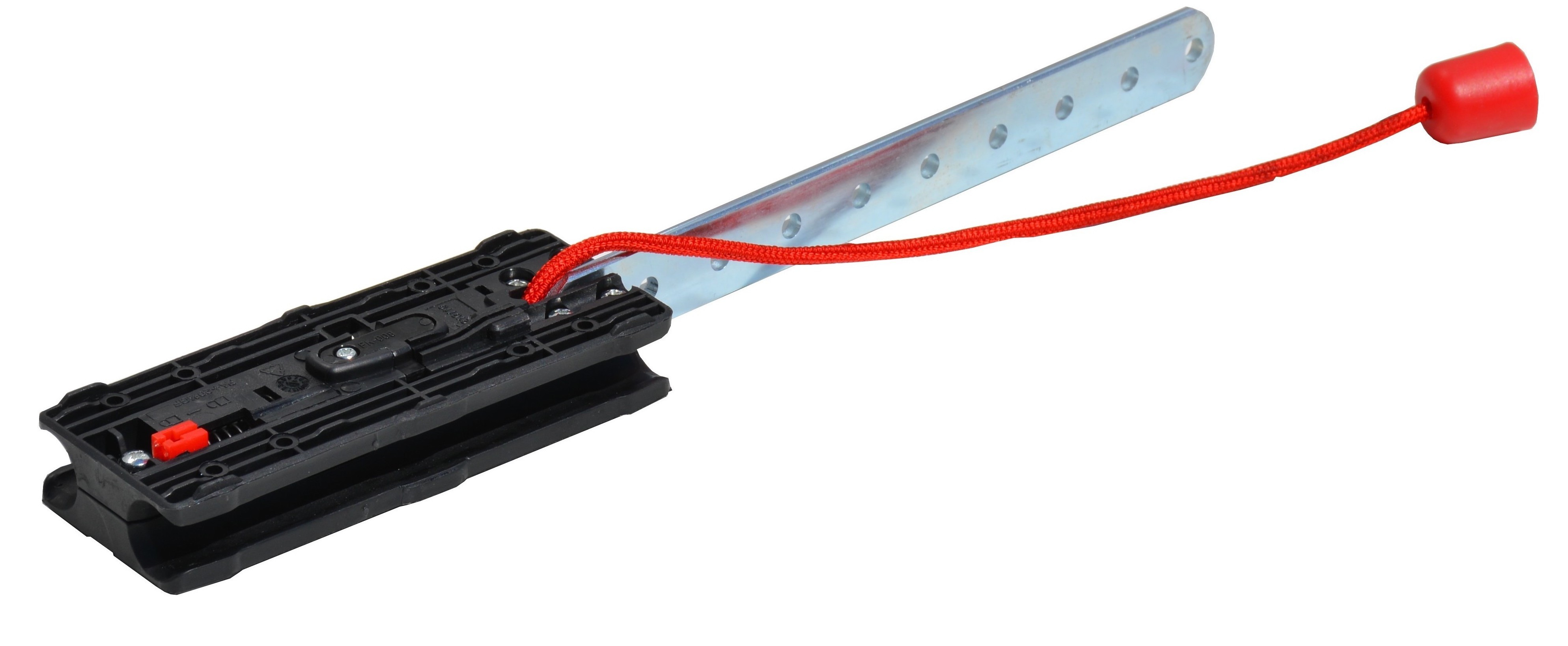 Simple d’installation, il est relié au moteur sur les bornes destinées au bouton poussoir, un capteur filaire détecte la position de la porte et il est alimenté par une prise de courant