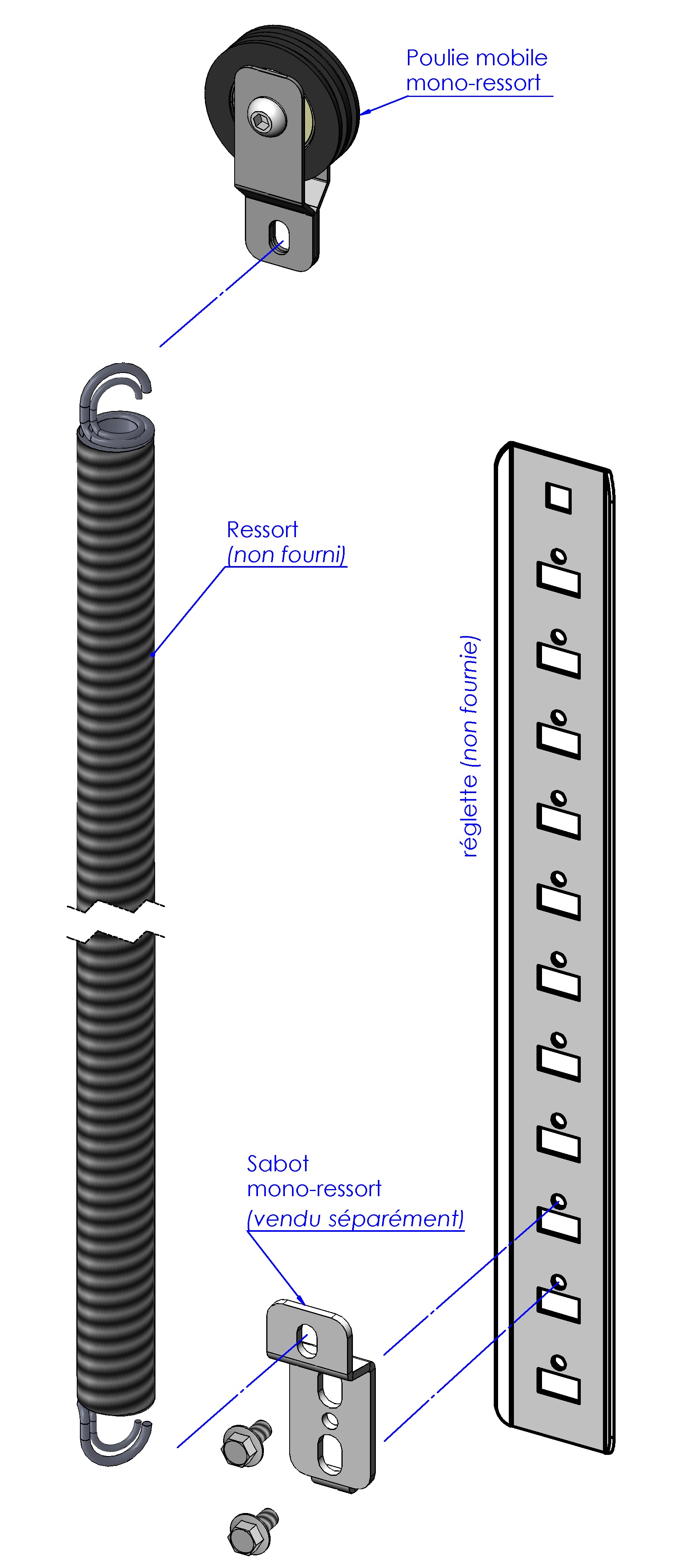 puce Un seul trou au centre pour l'accrochage d'un ressort unique (ou doublé) à boucles